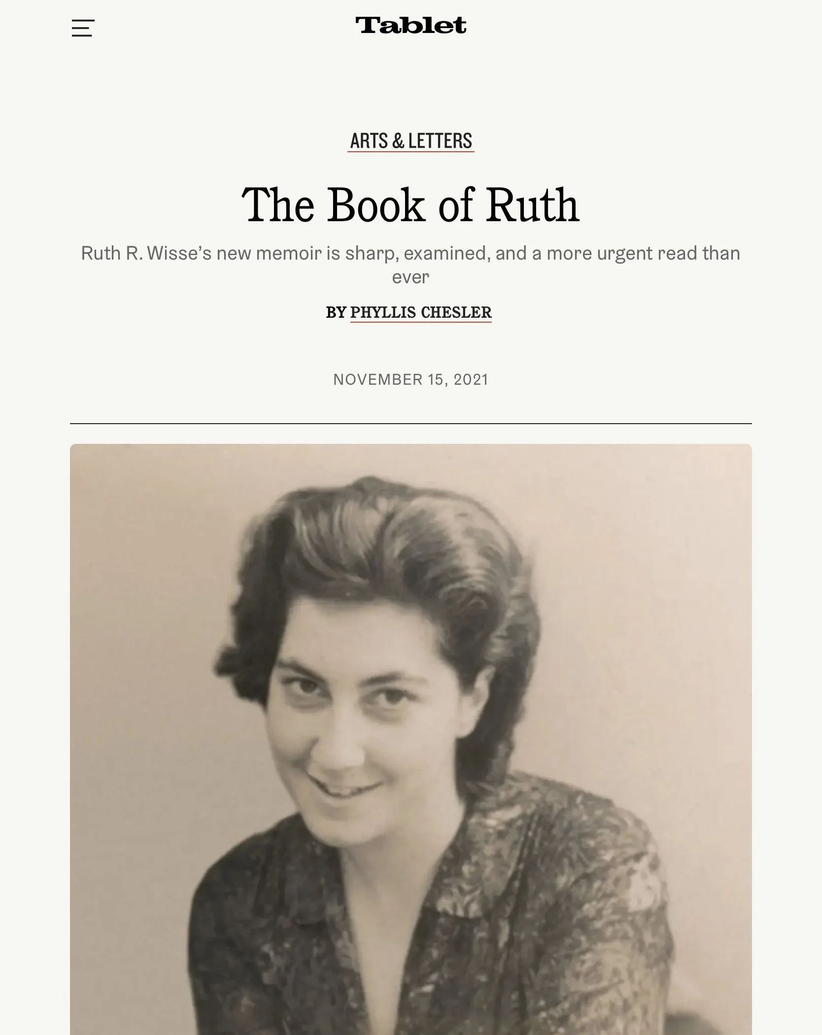 “Ruth Wisse’s memoir, like the great literature she taught generations to cherish, is a study in how our fierce attachments shape us, and how we, in turn, shape our modern moment by affirming our ancient covenants. Her voice, like that of Hebrew prophets from time immemorial, is an invitation to revel in the only sort of freedom that lasts, the freedom to embrace our tradition together, with joy and with strength. Always, but particularly in these troubled times, Ruth Wisse is indispensable.”